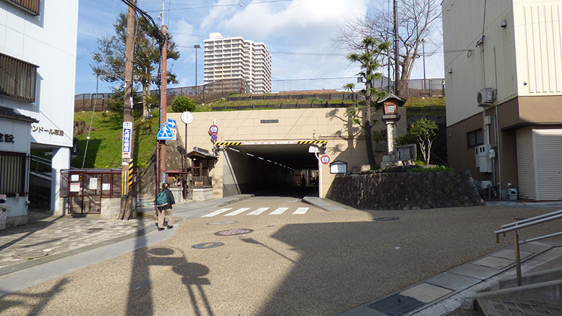 草津の追分。大津からやってきて、ここで東海道は右に曲がり、中山道はまっすぐ。ふたつの大きな街道の分岐点なんだけども...、目が行くのはトンネル! 町のど真ん中にトンネルって。