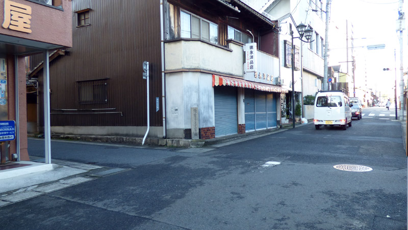 大津の京町通り。そういえば、琵琶湖、まだ見てないですよね。「えっ、そう? どこかの町屋の間か、交差点で見えなかった?」 ...う~ん、見たような、見てないような...。