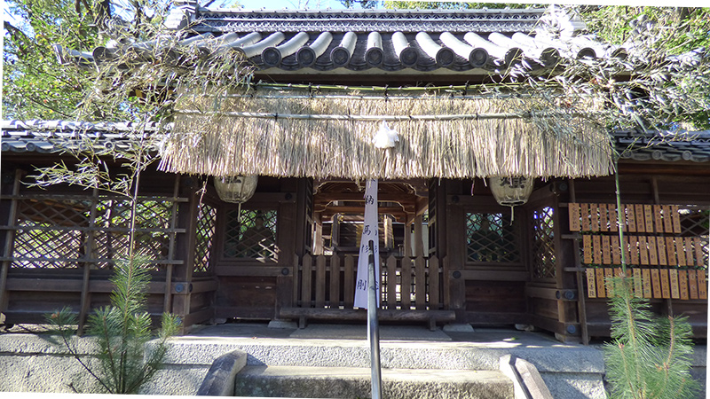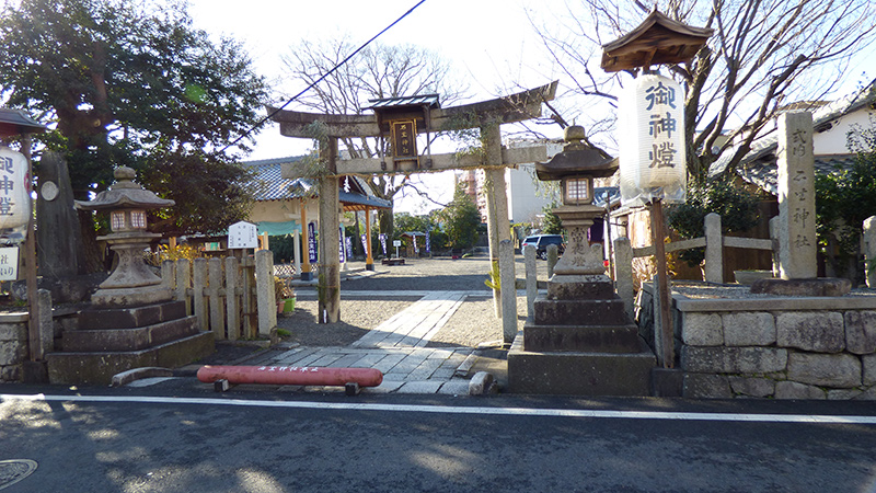 和田神社。関ヶ原の戦いに敗れた石田三成が、京都へ護送される休憩の際、この木につながれたとか。