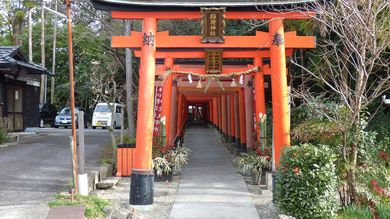 矢倉稲荷神社。旧街道と、車がブンブン通る国道が交差しているところにある、こんもりとした小さな森。本殿のすぐ横を国道が通っているのだけども、旧街道からは、写真のとおり。