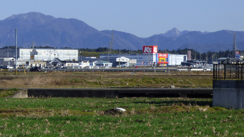 水口北脇縄手のちょっと手前から。横田の渡しで、野洲川を越えてから、新しい稜線が視界に入ってきた。あれが目指す鈴鹿山系か? 「ちょっと、方角が違うと思うけど」...そ、そうかなぁ。
