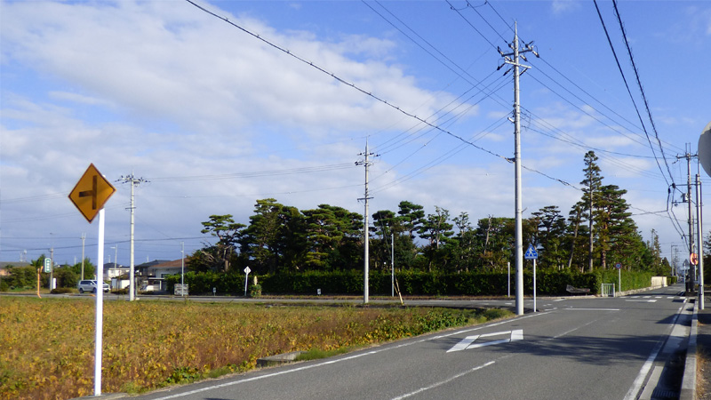 いいね。このカーブと、松。道の脇から、ぐいっとせり出しているのかと思いきや、松の周りは舗装されていて、道の中央よりに生えているんだね。仕方ないので、松から左はすべて歩道にしちゃった、と言うような感じだね。