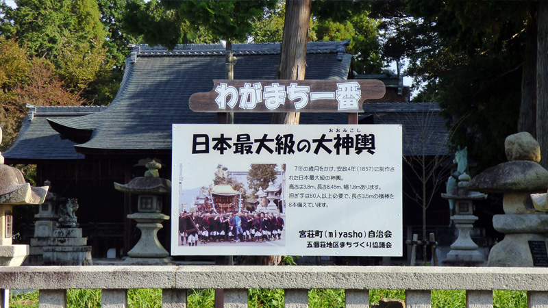 「神社の前に、こんな案内板があるよ。」 神輿、いいね~。担いでみたいね。