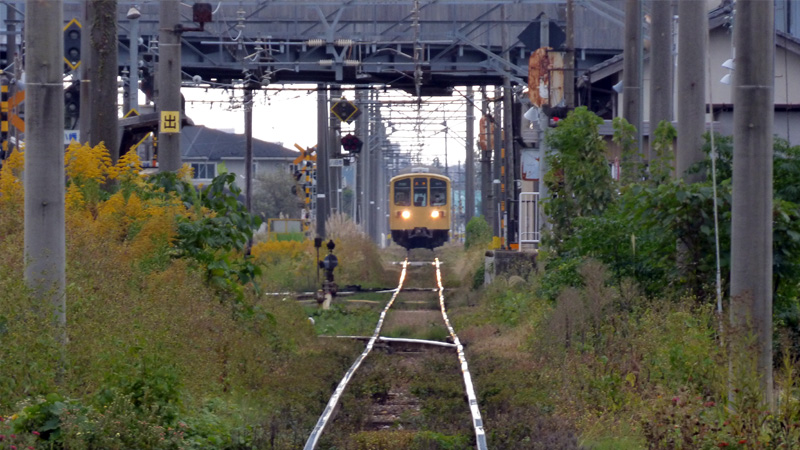 踏切を渡っていて、何か、遠くで、光ってるので、望遠で撮ってみたら、電車が来る! 「何、言ってんだか。」 線路いがんでるよ。「望遠撮影だからでしょ! この電車、すっごく遠くにいるんでしょ?」