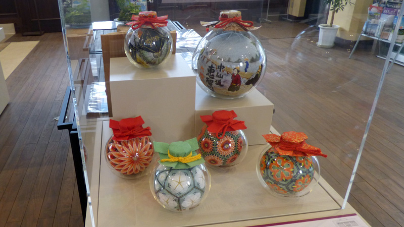 愛知川の伝統工芸だそうな。なんか見入ってしまうよね。「丸い瓶の中に、瓶の口より大きな手毬が入っているけど、どうやって作るのでしょうね。」