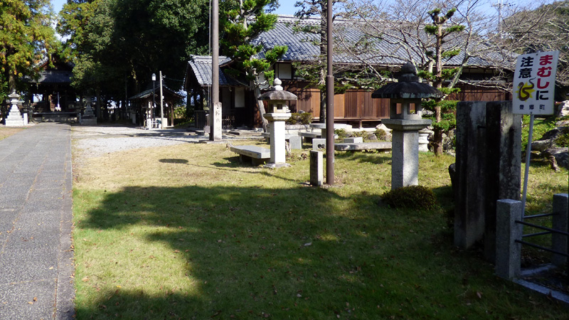 写真は、岡本本家のすぐ南。道なりに行くと、すぐに川で、渡って集落に入ると、目加田城跡。土塁らしきものと碑と案内板があるけど、一般の住宅と境がはっきりしないので、どこまで入っていいものか。ちょっと失礼します。