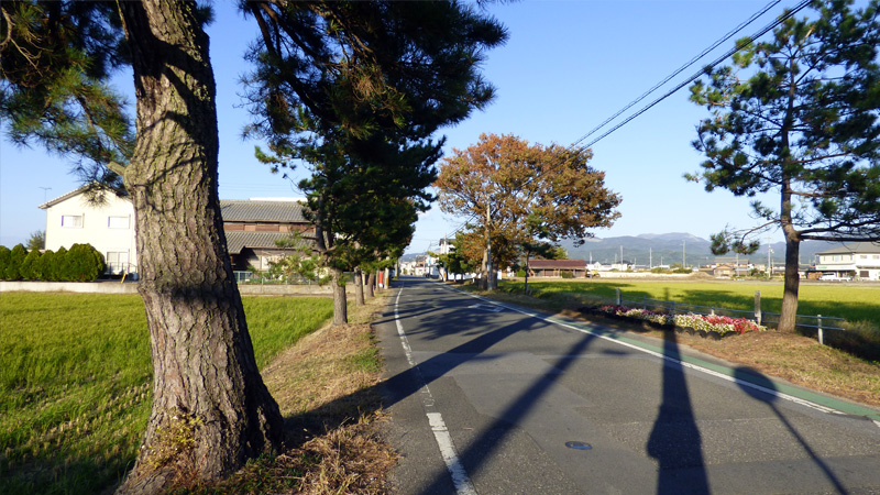 いいね。並木の影もいいよね。道から田んぼに思いっきり、はみ出してね。