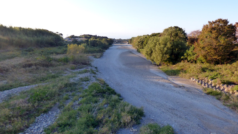 「ありゃ~、川の水、まったく無いね。」 ホントにね。あるときは、幾つもの橋を押し流し、あるときは全く水がない。一番困るタイプの川だね。
