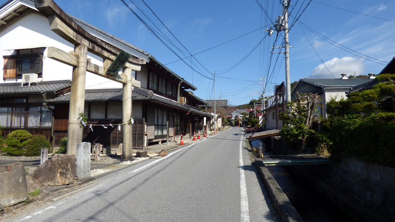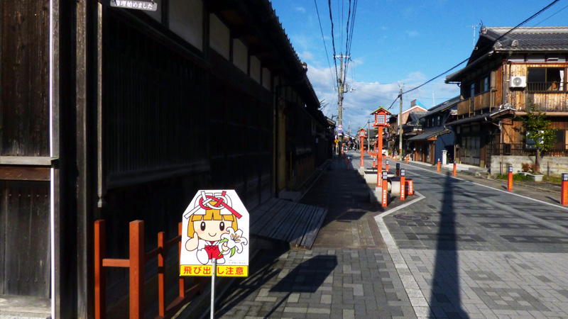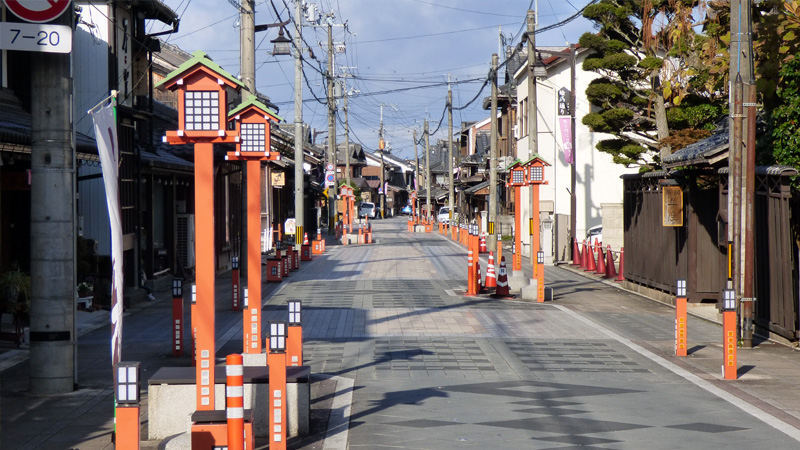 いや~、街全体、気合いが入ってますね。道路は、きれいにブロックで覆われているし、車道・歩道が明確に別れていて、車がスピード出せないように、ジグザクにしていて、そのスペースにあかり灯篭が設置してあってと。街全体が境内みたいな感じですね。