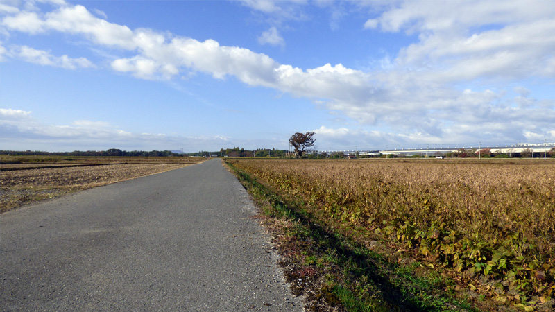ゆる~く、くねくねした道、いいね。「でも、これ、なんでまっすぐじゃないの? 何よけてるの?」 さ~? いねむりしないように? 「それ、車の場合でしょ。」 m(_ _)m