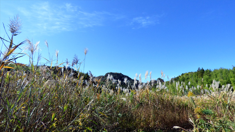突撃!! と、言いたいところですが...。「すごいね、ここのススキ。背丈よりも高くって、先が見えないけど。行く??」