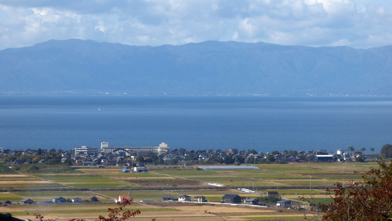 摺針峠のてっぺんにある神明宮から琵琶湖を望む。