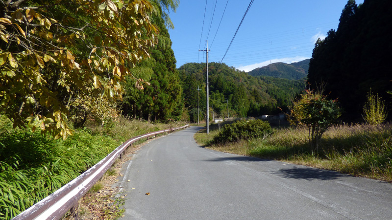 峠に入ったところ。いいね~。スキッとしているね。それに、なんと言っても、先ほどまでの車の騒音じゃなくて、虫の声が響いている。道もなだらかだし。「まだ山道じゃないね。」