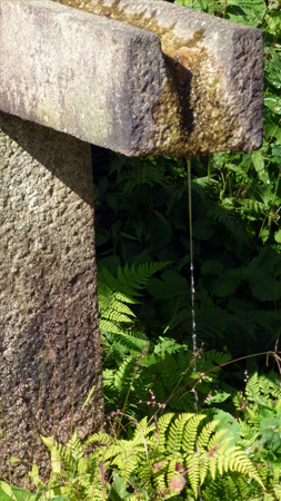 斜面から出ている石の水路から、ホント、ちょろちょろと、でも連続して流れているよ。