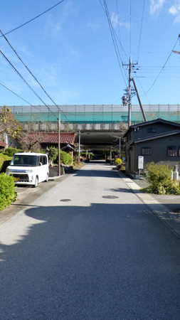 上を通っているのは、名神高速道路から分岐してすぐの北陸自動車道。「すぐって?」 起点から400メートルのところにあった料金所よりも、さらに起点より。「ほぼこの一里塚が起点?」