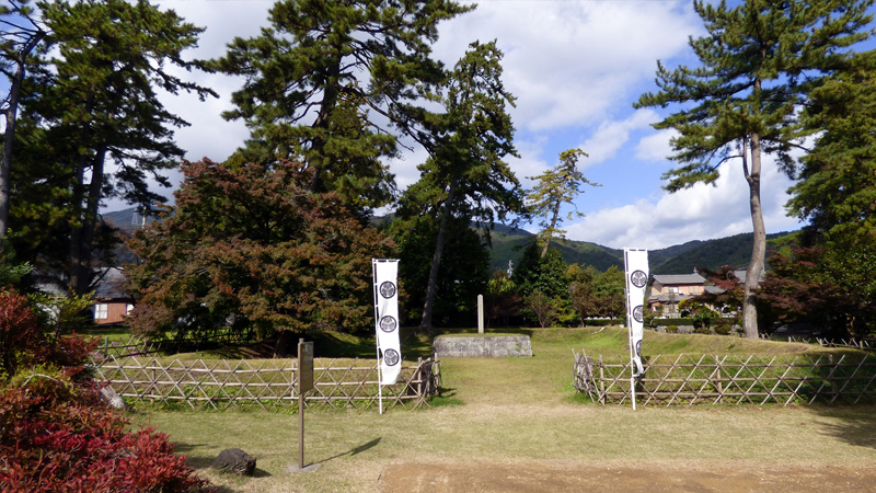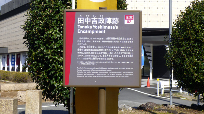 田中吉政の陣跡...というか、ほぼほぼ家康最後の陣と同じ、かつ、ほぼほぼ古戦場記念館と同じ場所。写真の後ろに写っている旗差し物が、記念館。