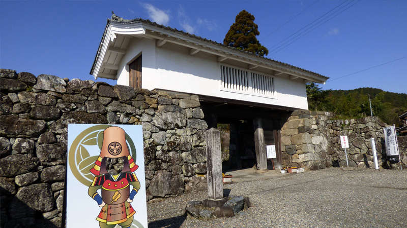 竹中氏陣屋跡楼門前の顔抜きパネル。
