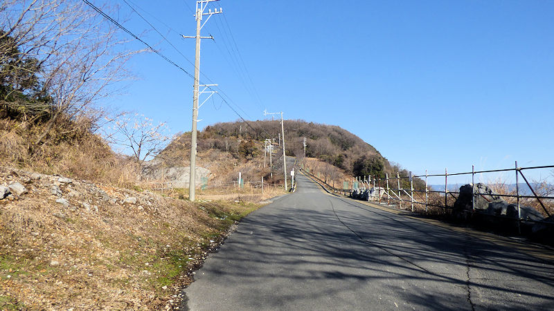 目の前の山、まっすぐ続く道の右側は、崖ではないにしても、かなり切り立っている。そして左側は、採石場。見えているところを残して、切り立っている。「確かに、浮いてるようにもみえるかな?」
