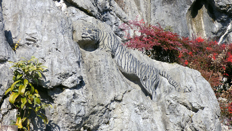 「こちら側にも、石灰石の工場があるね。」 この山、もともとは、二億五千万年前のサンゴ礁によって作られた石灰石のかたまりだそうな。「もともとは、海の底ね。」