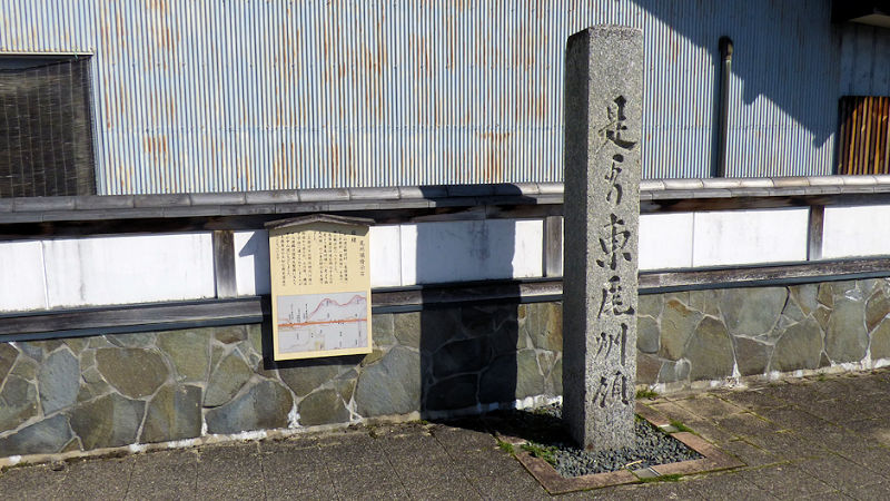 案内板によると、中山道は、尾州領から天領にはいり、すぐまた尾州領に入るとあるね。「その境の石柱だね。西の境界の石柱はあった?」