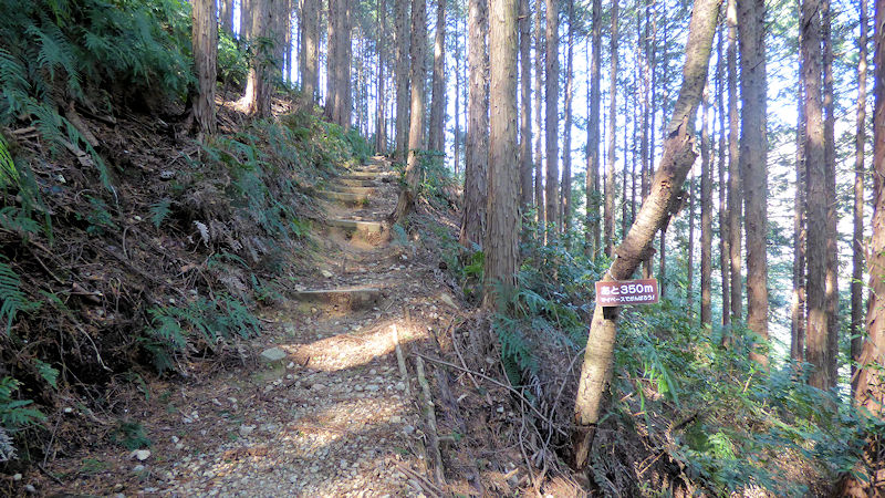 あと350メートルって、書いてあるけど…。「そうだね。さっきも同じプレート、あったけど、何メートルだっけ?」すわぁ〜。笑。
