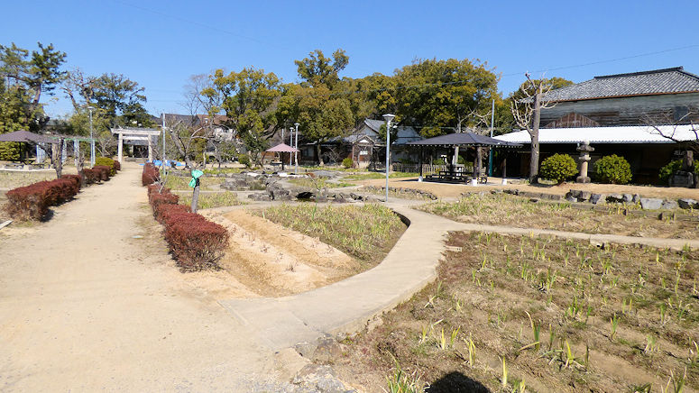 このことが、あってから、この池の水で目を洗うと、目の病が治ると信仰を集めたとか。「あ〜、太鼓橋の左側に、池へ降りる階段みたいなのがあるけど、そのため、かな?」