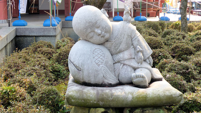 う〜ん、じゃ〜、仏教の真理を現しているとか。「こりゃまた、大きく出たね。禅の境地を表す、四睡からの連想?」 その通り。m(_ _)m。「四睡の方は、豊干禅師、虎さん、寒山、拾得が居眠ってる図だけど、見る人の心をつかむ点では、こちらの小坊主さんの方が、優っている気がするね。」 さすがわ、禅宗‼︎「いやいや、ここは、真言宗!」 m(_ _)m。