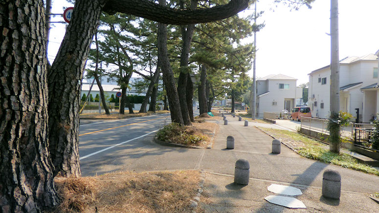 松並木、発見!道路の向こう側に、走っていきたいところだけど、交通量の多い国道1号線なので、無理!…ということで地下道だね。「昔を偲ぶ松並木の手前で、当然当時は存在しなかった地下道ですか…。」まぁ、メリハリついて、いいかも?