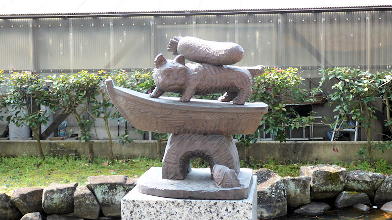 正解は…ようこそ、ようこそ。「何??」おみやげを持ってやってきた猫:旅人に対して、舟に鯉:つまり池鯉鮒の人達が、ようこそと歓迎している姿を、民話風に現したものだって。「知らないはずだね。」