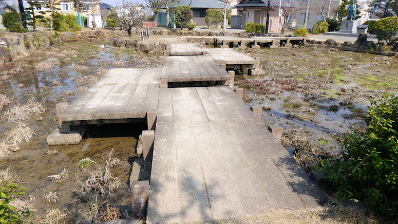 お〜、ここが、藤吉郎と蜂須賀小六の、出会いの橋。「同じ出会いでも、池鯉鮒宿の業平さんとは、ずいぶん違うね。」あちらは、恋仲の男性と女性。こちらは…。「大人と子ども。」おいっ!