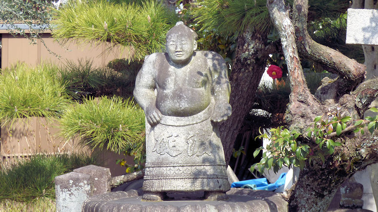 「おっ! お相撲さんだね。」道路に、せりださんばかりに、立ってるね。「観客席のベンチもあるよ。」それは、たぶん、バス停のベンチ!「m(_ _)m。」