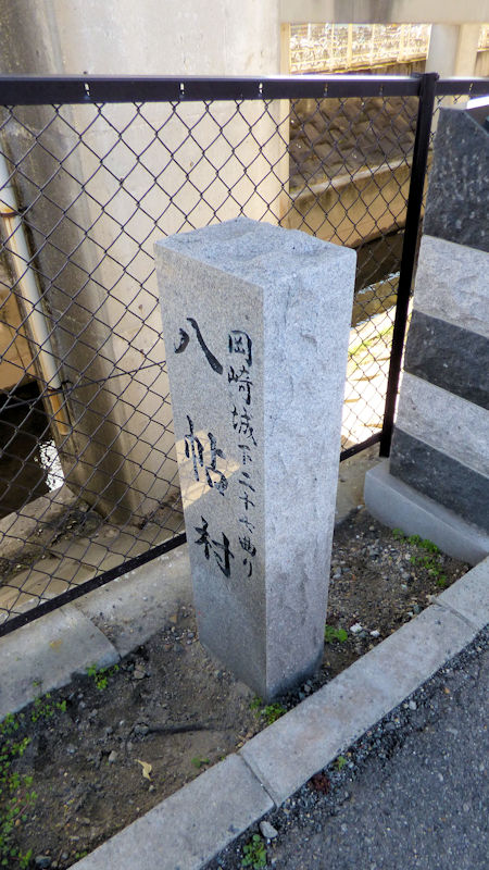 「でた〜。岡崎城下二十七曲り。」 八帖村…と、あるね。「ここが、二十七曲りの、最初の曲がり角?」 いや〜、違うんじゃない? 今、中岡崎の駅から来たから、ここ、曲がり角だけど、東海道自体は、真っ直ぐだもんね。「謎だね。」