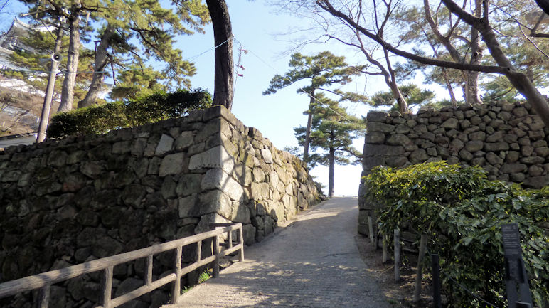 ただし、元々の大手門は、ここより北東に二百メートルほど、街中にあったようだね。「そうなんだ。今より、ひとまわりも、ふたまわりも、広かったんだね。」