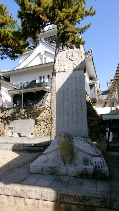 「それ、逆でしょ! でも、かっこいいね。」 本多忠勝と、ふるっていた愛槍:蜻蛉切りとが一体となって、天守の前で仁王立ちしているように見えるね。名付けて、蜻蛉切りの松だね。「誰が、いつ、名付けたの?」 拙者が、三分前に。「おいっ!」