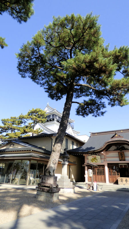 本殿拝む前に見た時は、水平垂直に設置してあったと思うんだけど、今、見たら、松の木と…。「シンクロしているね。」 でしょ。「お茶目な狛犬さん?」 う〜ん、ひょっとして、忠勝さんの愛馬、三国黒? 「かもね。」