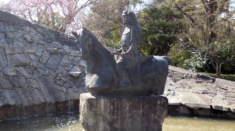 「またまた、神君の像だね。」 竹千代くんだね。ここは、城内、岡崎公園の案内板の横に、軍配持って立ってるけど…。「幼少の頃から、仕切り屋だったの?」 おいっ!