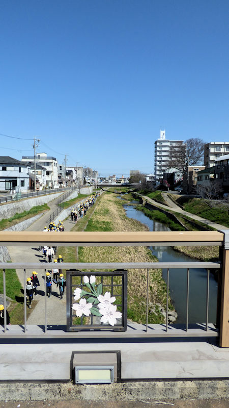 橋の欄干に咲く花に誘われて、小鳥のさえずり…、いや…、天使たちの声…、と…思いきや…。「思いきや?」 河川敷を行く、小学生たちの声。「いいね。いい情景だね。」 三河弁で、何しゃべってるのか、分からなかったけど…。「おいっ! 持ち上げといて、落とすなっ!」 m(_ _)m。