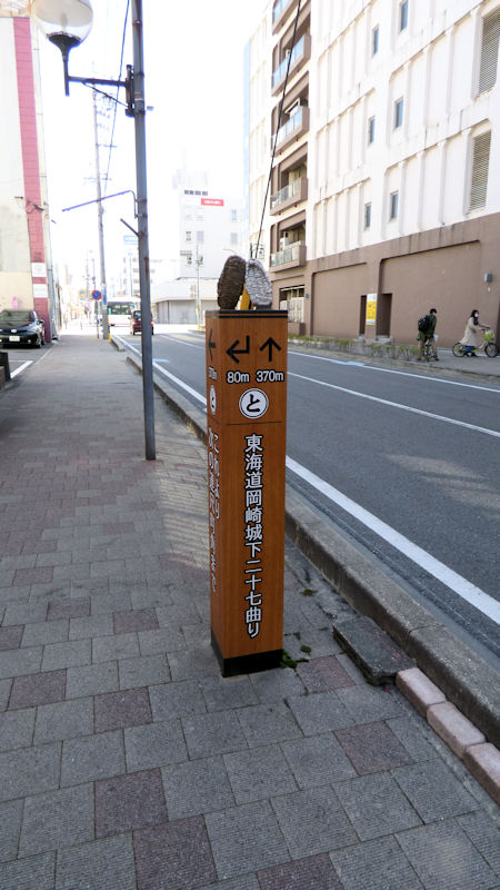 「岡崎でも、大変だったのかなぁ?」 案内板によると、通過するだけじゃなかったみたいだね。「泊まったの?」 休憩をしたようだけど、ご馳走屋敷というところに招き、岡崎藩のご家老が出向いて、丁重にもてなしたようだね。「街道筋の藩のご家老は、大変だね。」