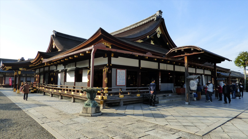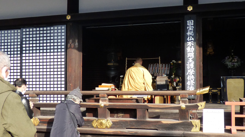 東寺の西院:御影堂の裏側というか、南面している方に護摩供修法所があり、たぶん、その奥、建物の中に秘仏不動明王がおられる。
