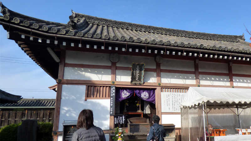 食堂(じきどう)のまわりに、四国八十八カ所霊場の本尊が描かれた掛け軸が掛けられ、その前には各霊場のお砂が置かれている。もちろん毎月21日の弘法さんの日だけ。