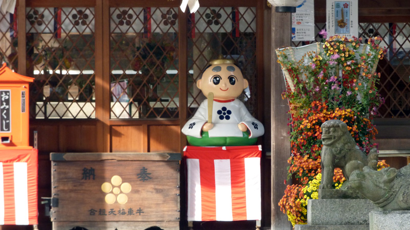 まあ、明治以前は神仏習合はあたりまえだし、できるだけ多くの人の目に触れるということで、北野さんを選んだんだろうね。毎月25日は天神さんで、東寺の弘法さん同様、すごく賑わうからね。「でも、北野天満宮から東寺に引っ越したんだね。」 明治の廃仏毀釈でね。