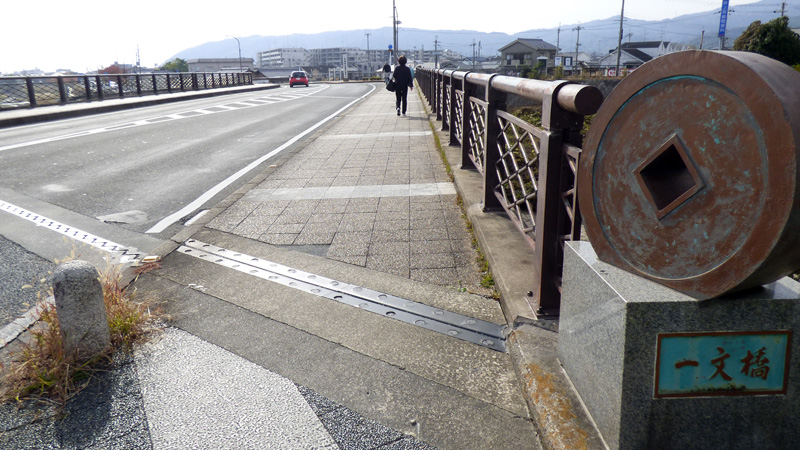 一文橋(いちもんばし)。この橋は、日本で最初の有料橋と言われている。「えっ、それはすご〜い…、と言うか、めいわくなんじゃない?」
