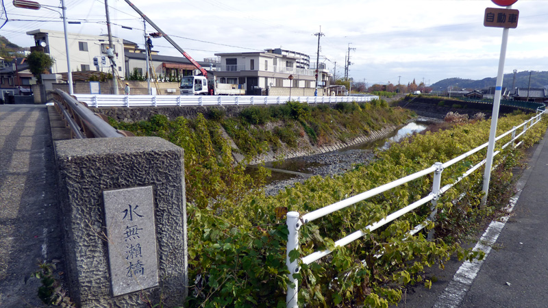 見かけ、まったく水が無いけれど、実は川底の地下を、水が煌々と流れている水無瀬川。大昔から、恋の歌によく使われた川。