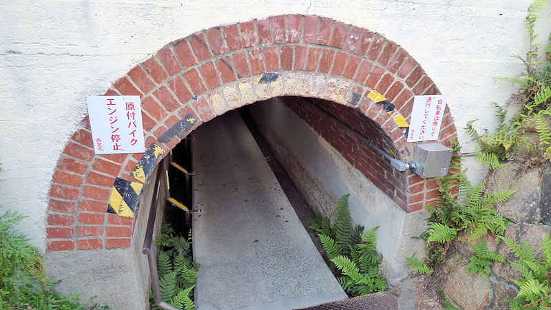 自転車は降りて通行してください。西宮市。「見りゃ、わかるでしょ! どう見ても、高さは、150センチ、いや、140もないかも。大体、ハンドルもって、自転車と横並びでは、無理でしょ。」