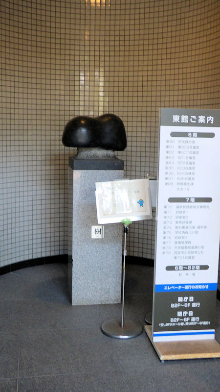「でかいね〜。」いいね。遠くから見ていたら、隣の市役所庁舎が高いこともあって、街路樹の延長的にしか見えないんだけど、近づくと…。「近づくと、ビルよりも高くなる?」 いや、流石に、それはないけど…。