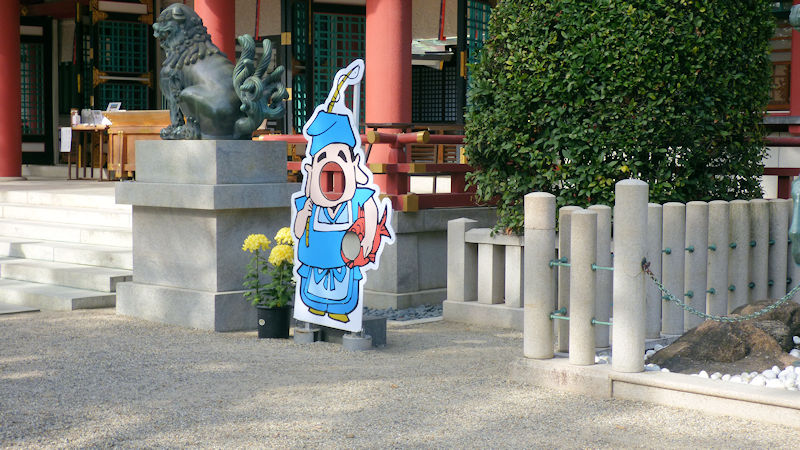 「一見、えびす様だから違和感ないように思うけど、普通、祭神を顔抜きの看板にするって、恐れ多すぎて、大胆なんじゃない?」