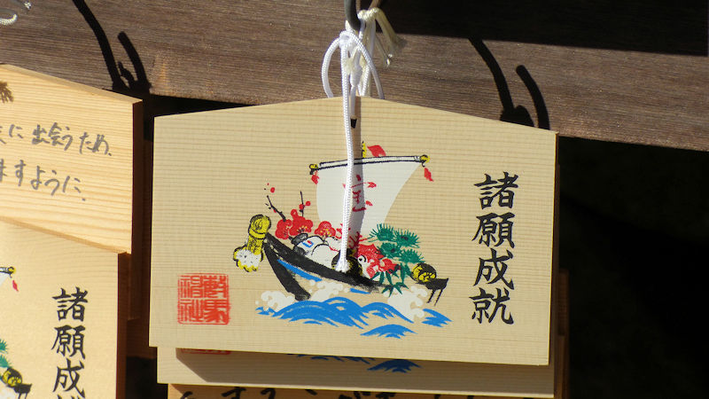 絵馬の船は、縁起のいい、宝船なんだろうけど…。「むかしは、この丘の杜から見える、ごくありふれた風景だったんだろね。」
