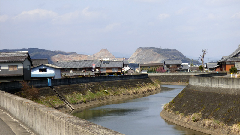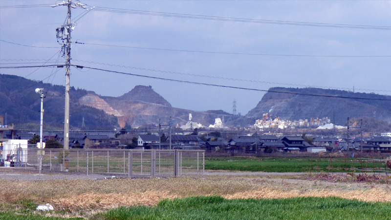 石灰石の、採掘場なのかな? 周りの山と比べると、小さいとは言え、完全に山だね。山。