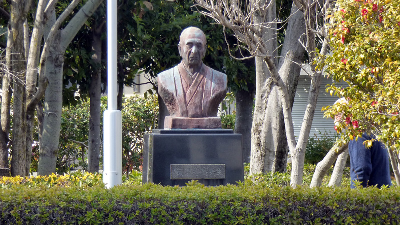 薬木広場の飯沼先生像。