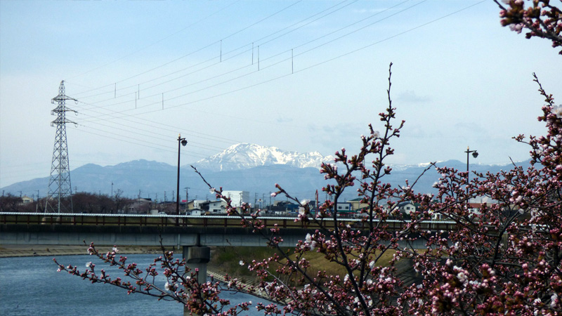 桜が咲き始めてるね。いい季節だね。雪の伊吹山が、毎日どんなに頑張って冷たい風を吹かせても、春の到来は、止められないんだね。「頑張れ! 春‼︎」